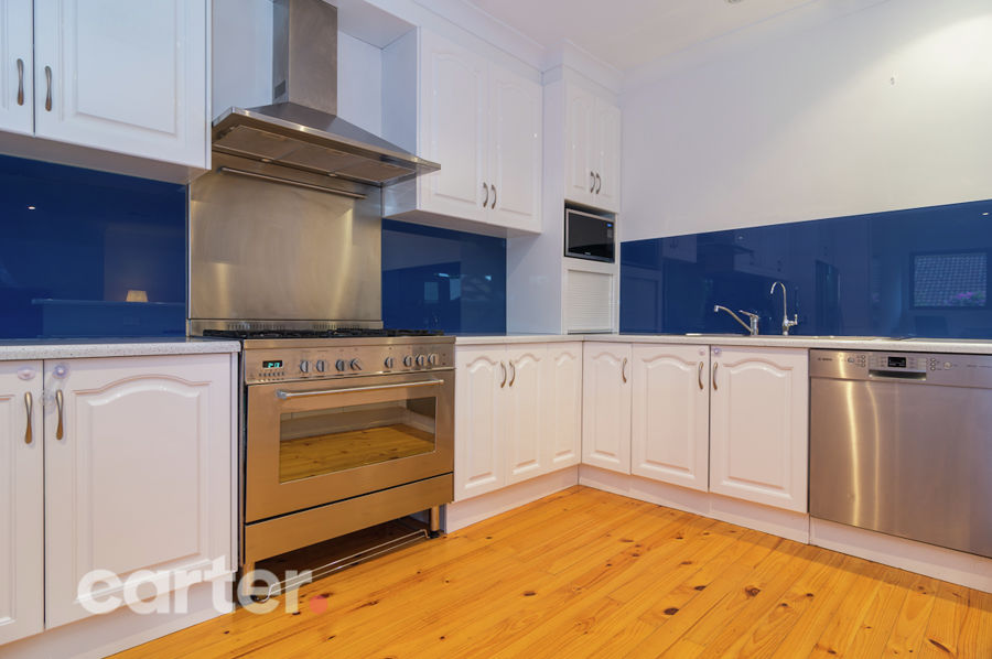 At the heart of the good times (and food) to come is a 2-pack kitchen with a Delonghi 900mm freestanding oven, Bosch dishwasher, and glass splash backs in a striking royal blue. Brilliant.