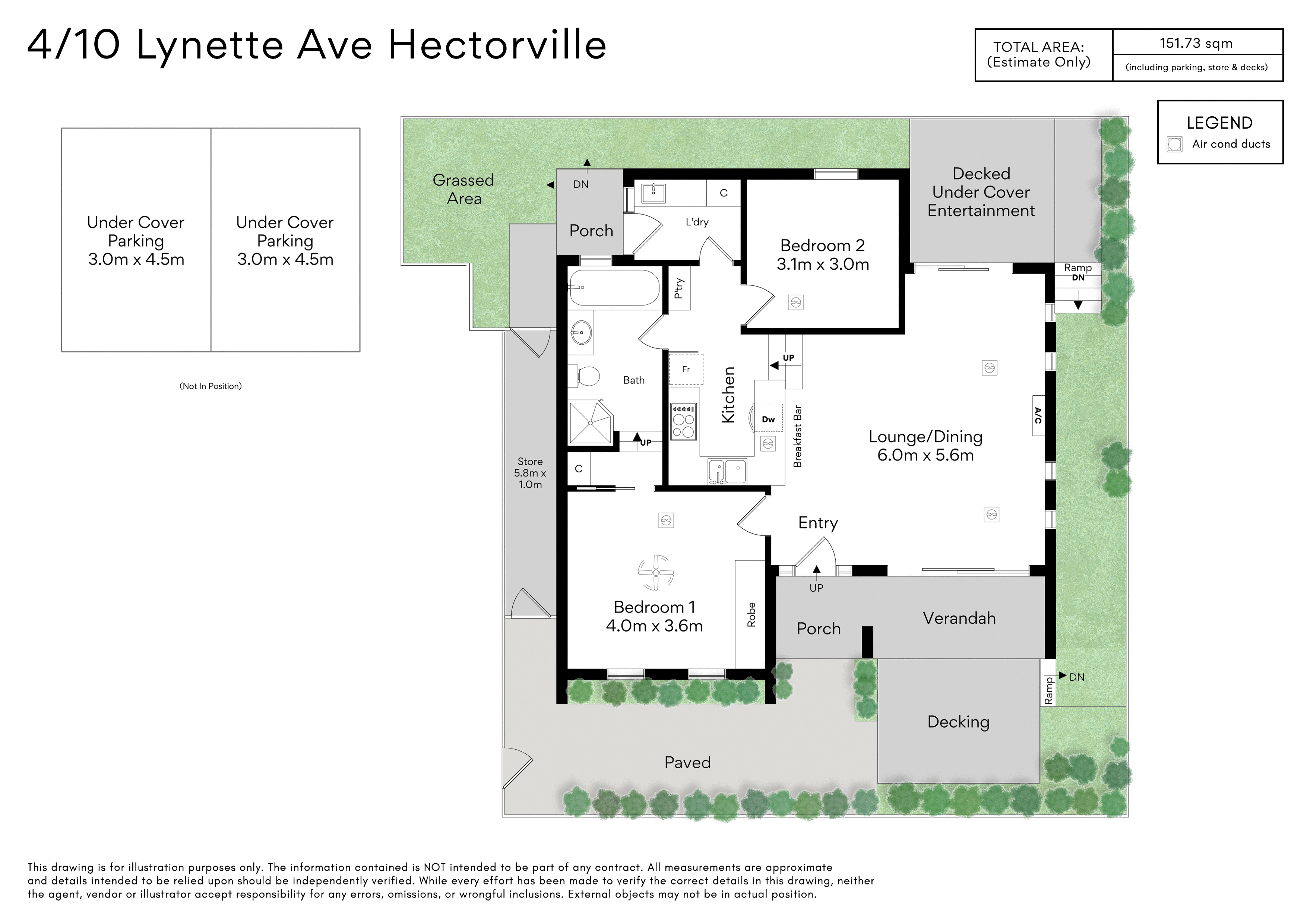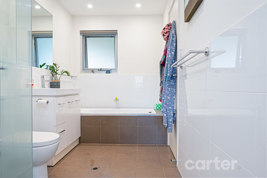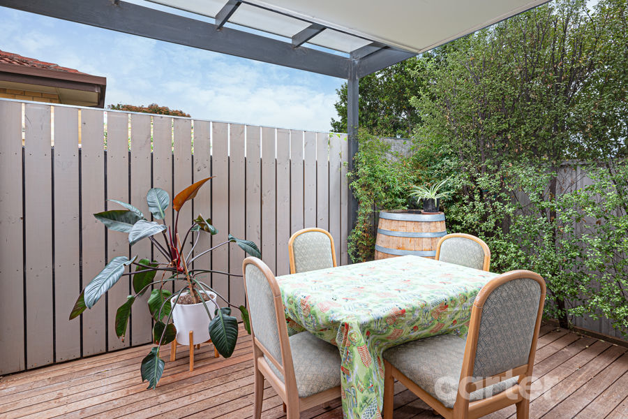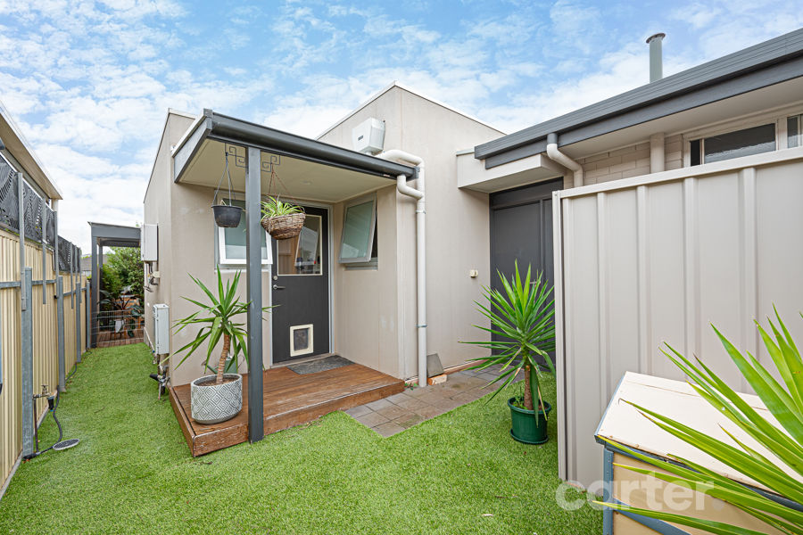 The sizeable north-facing master bedroom features built-in robes, ceiling fan and direct access to a two-way bathroom that also services the second double bedroom. A separate laundry boasts extra storage and opens onto a third maintenance-free outdoor area with artificial grass and private clothesline.