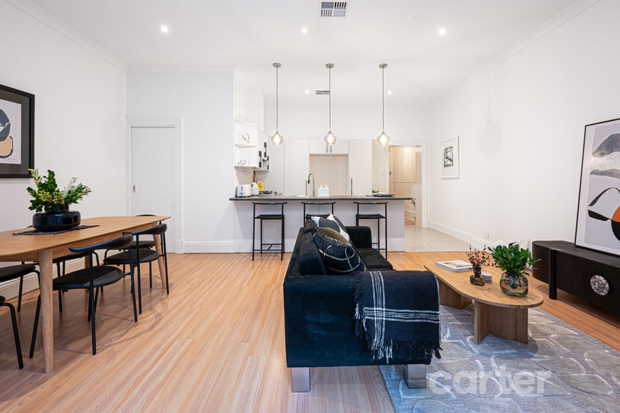 Imposing glass doors overlook a 'secret' garden that is the pride and joy of the garden designer owner which has been lovingly curated as a restful and enchanting retreat, offering a touch of paradise while enjoying dinner or an evening wine, entertaining friends, or simply pottering, savouring the peace these delightful surroundings bring. Fully underpinned before renovations began, this property has been thoughtfully restored throughout, marrying the past and present in perfect harmony.