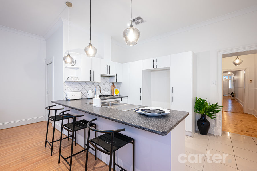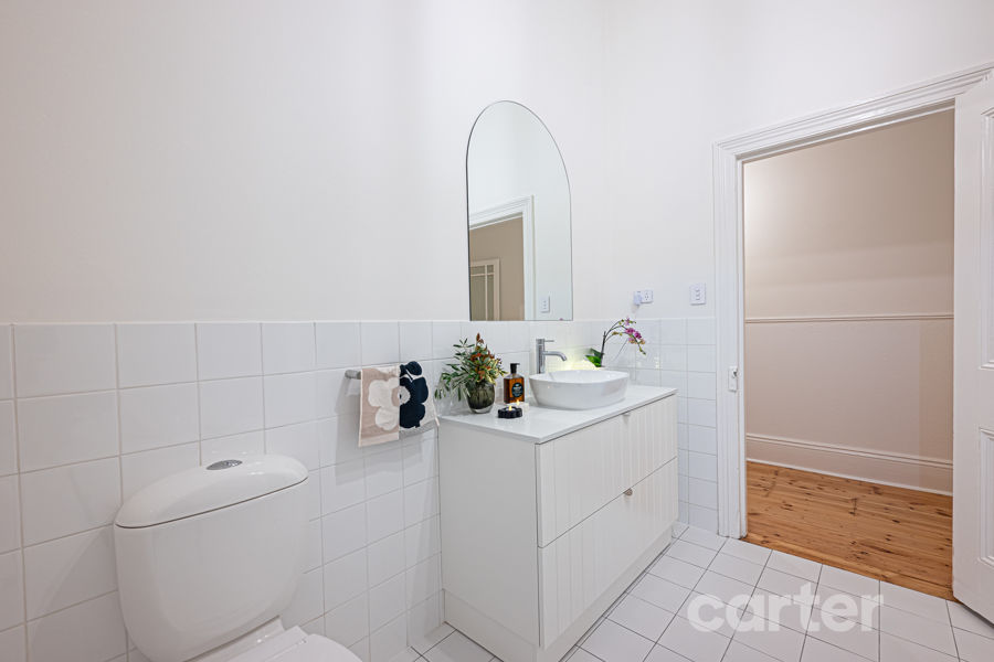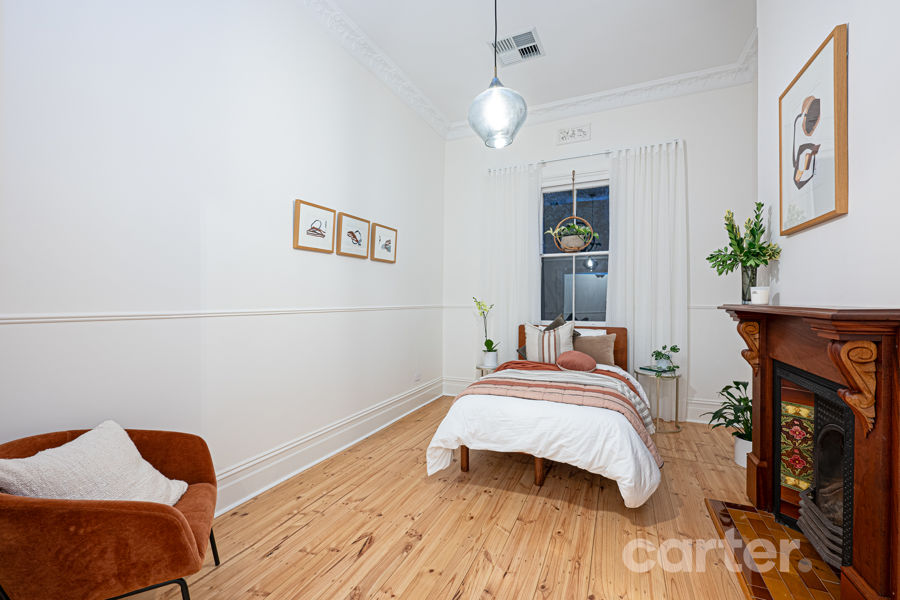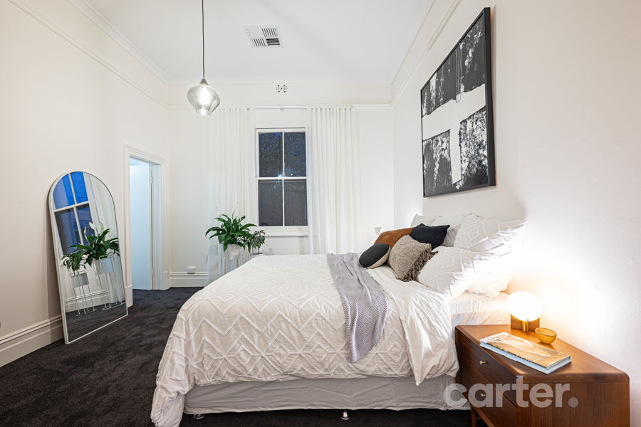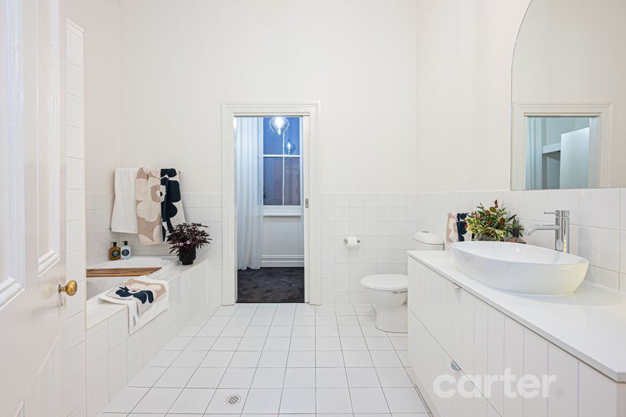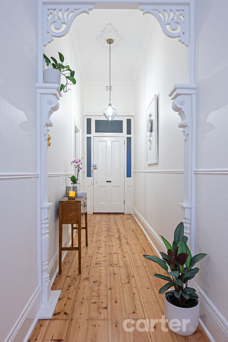 Beyond the sturdy jarrah front doorstep lies a grand hallway of freshly polished baltic floorboards spanning almost the entire length of the original house. Your eyes will be drawn to the ornate woodwork archway as you wander past two airy master-size bedrooms with 12-foot ceilings, one with walk-in robe as well as direct access to the large, sparkling white two-way bathroom.