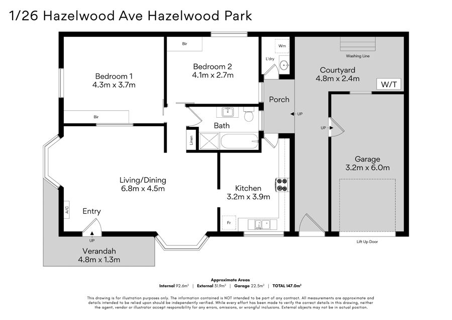 Comprising two bedrooms, each fitted with built-in robes for excellent storage and the primary bedroom offering a peaceful outlook. Enjoy the versatility of a bathroom equipped with both a separate bath and shower - perfect for relaxed evenings or quick morning starts. A separate laundry with direct external access adds further functionality, leading out to a private clothesline and low-maintenance outdoor area.