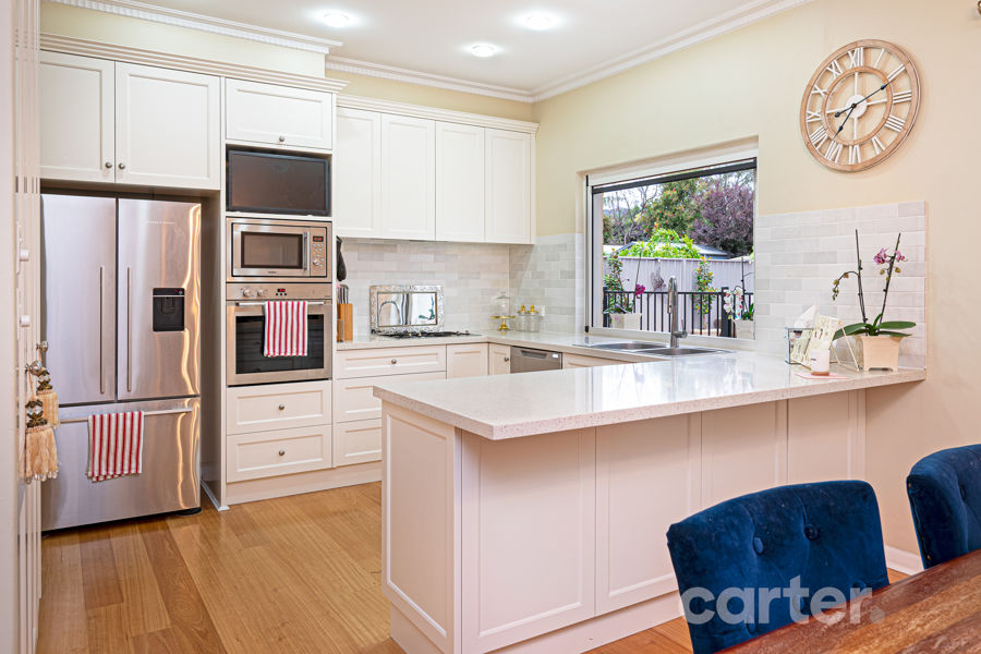 The downstairs living and dining zones are light-filled and welcoming, offering plenty of room for families to come together while still providing separate spaces for relaxation and quiet time. The updated kitchen forms the heart of the home, complete with quality appliances, ample bench space and a functional layout that makes both mid-week meals and weekend entertaining a breeze.