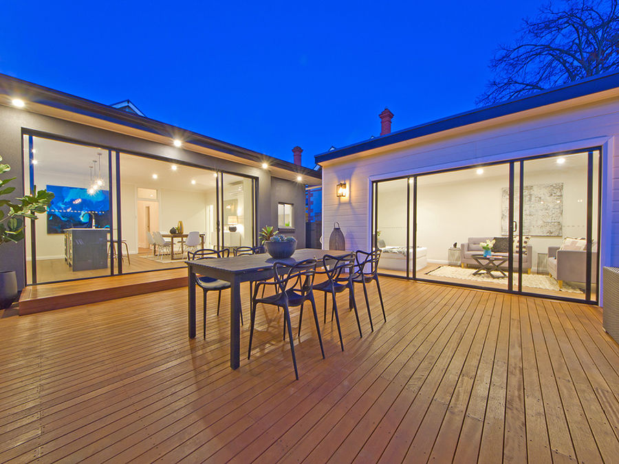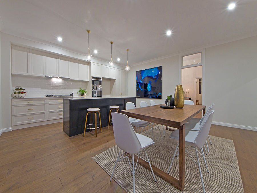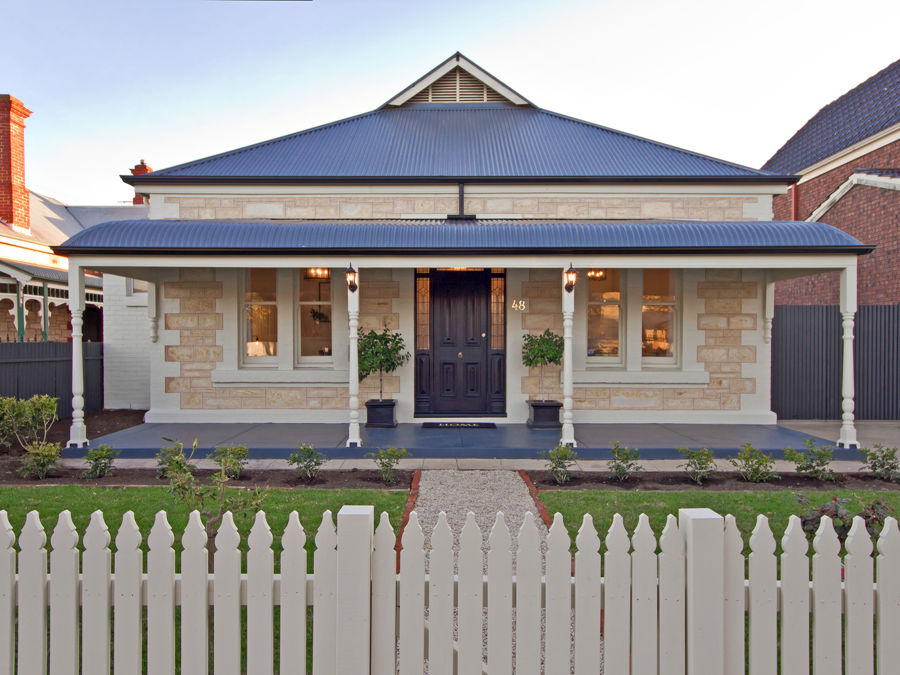 White pickets, repointed sandstone and landscaped gardens form the picture perfect face of a home where original and new collide with a beautiful bang within.