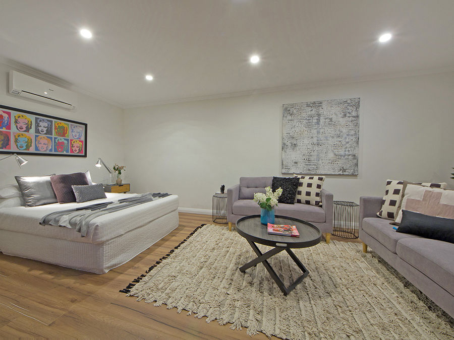- Studio/bedroom featuring timber floors, powder room and split r/c