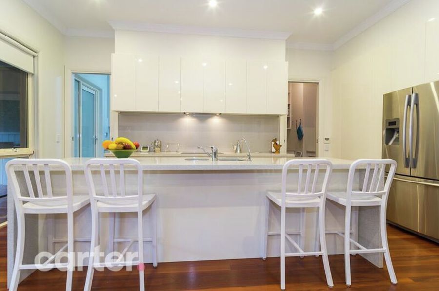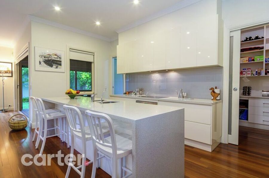 But the true star has to be the main kitchen; headlined by waterfalling Caesarstone, expansive island, two-pack cabinetry in pure white, glass splash backs, Smeg appliances and a butler's pantry.