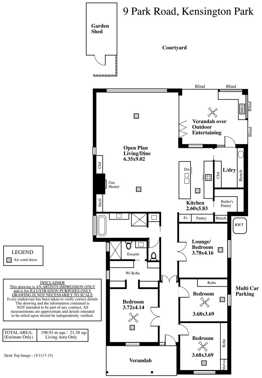 Those Jarrah floors and lofty ceilings you know so well match so seamlessly in a space that leads to an alfresco pavilion with a built-in kitchen and cafe blinds.