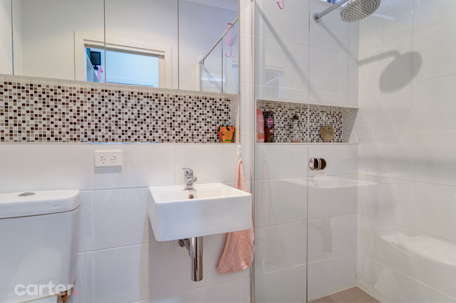 What begins with a lock-up garage for your pride and joy becomes a lower level with a large main bathroom and two bedrooms - with built-in robes - for kids or live-in students looking for a level to call their own.