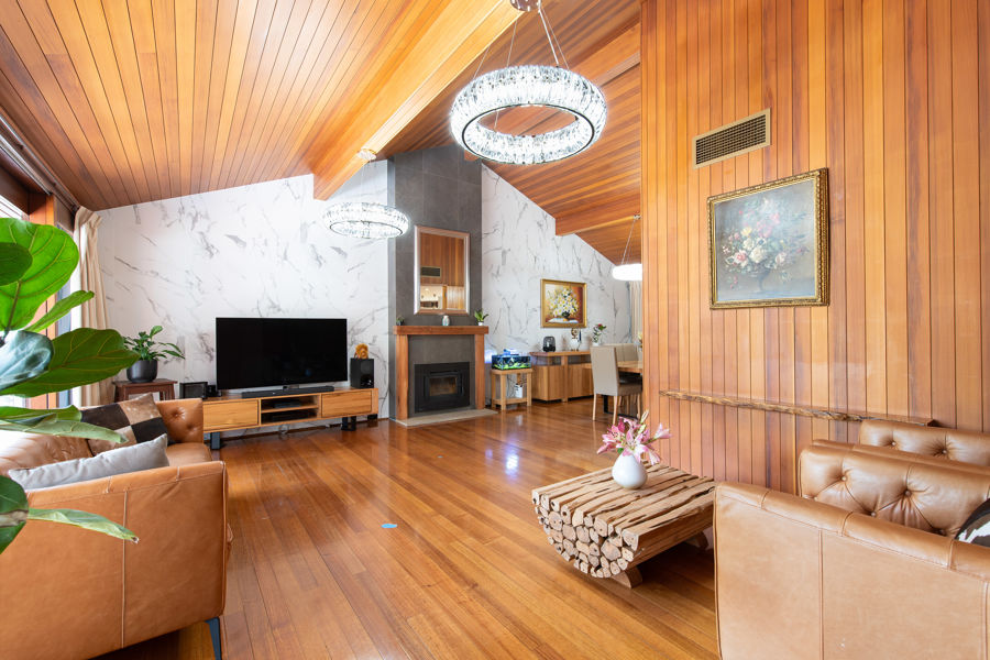 Soaring raked ceilings, exposed brick, big windows and timber floors feature in this architecturally inspired and robust home with a nimble floorplan for the multigenerational family.