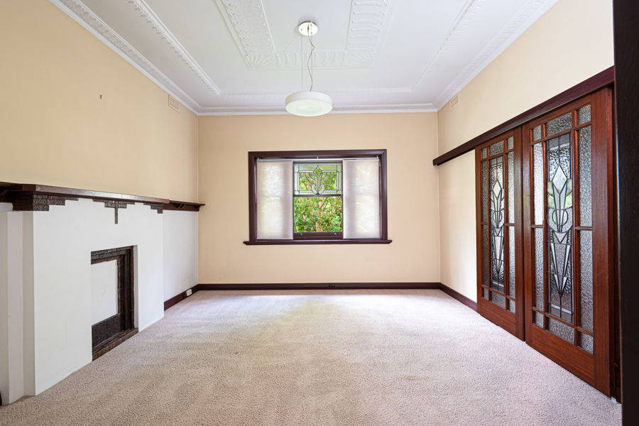 This stylish c1940 freestone-fronted art deco home boasts all the classic features of the period like finely detailed ornate ceilings, dark hardwood floorboards with matching timber wall detailing, leadlight windows, and interior doors.